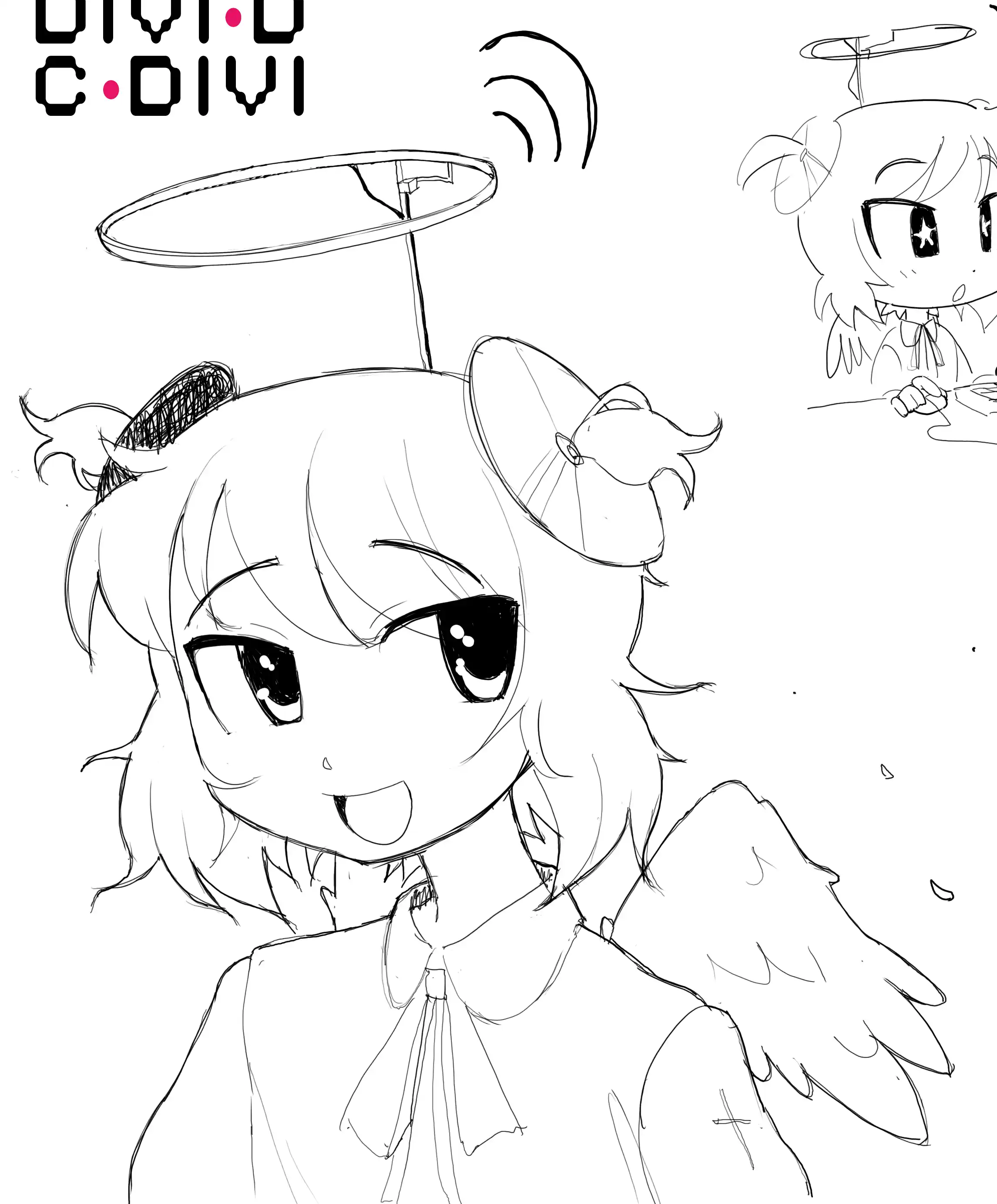 This is her original design I drew way back in 2018. She's changed a lot since then but I'll save that story for a future blog post. In a way Divi is the evolution of NHK-chan. Maybe I'll draw them together some day.